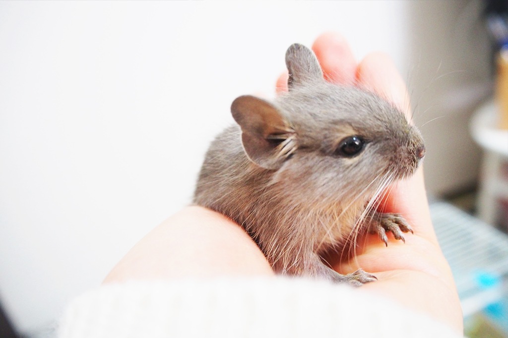 小動物を飼うメリットは? 当店で迎え入れをご検討されている方へ 小動物を飼うメリットは?advantages イヌやネコはペットとして人気がありますが、大変な点が多くあります。・長時間留守にすることができない。・大きな声で吠えたり、鳴いたりするので近隣への配慮が必要。・においが家の壁に付いてしまう。家の中が散らかってしまう。・定期的に動物病院に検診に行くなど、飼育費用がかかる。・毛が抜けるので、掃除などの手間が増える。それに対して小動物は、・ゲージで飼うのが基本なので、長時間留守にしていても問題ない。・ハリネズミやデグーは鳴かないため、近隣への配慮が必要ない。・においは犬や猫に比べて弱めなので、においが部屋に移る心配はない。・餌代、亡くなった時の費用など経済的な負担はイヌやネコに比べて安い。・散歩をする必要がない。小動物はイヌやネコに比べて飼いやすいです。初めてペットを飼う方は小動物のお世話から始めてみてください! 当店で迎え入れをご検討されている方へwelcoming 当店のハリネズミやデグーたちは常日頃から人に触れ合っているため、比較的人懐っこい子たちが多いです。ですが、もちろん小動物にも個性があります。ぜひとも当店での迎え入れの際は、直接触れ合ってからハリネズミやデグーとの相性を確かめていただきたいです。お客様のご来店をお待ちしています。